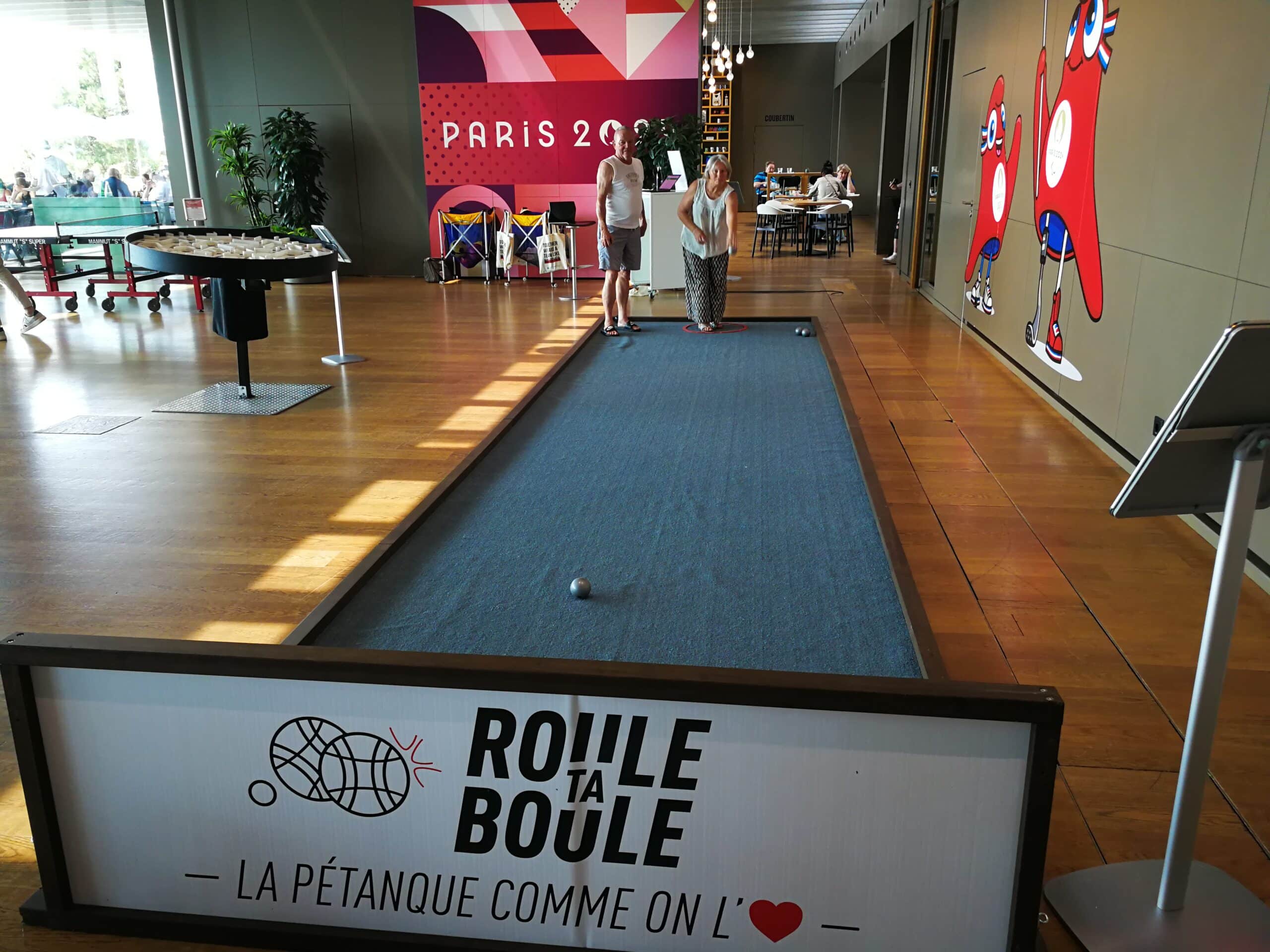 Un cochonnet, des boules, une déco sympa et le temps s’arrête. Le concept « Roule ta boule » de pétanque éphémère est idéal pour toute animation ou sortie d’entreprise. Facilement installable à l’intérieur ou l’extérieur ce jeu ludique est idéal pour petits et grands.